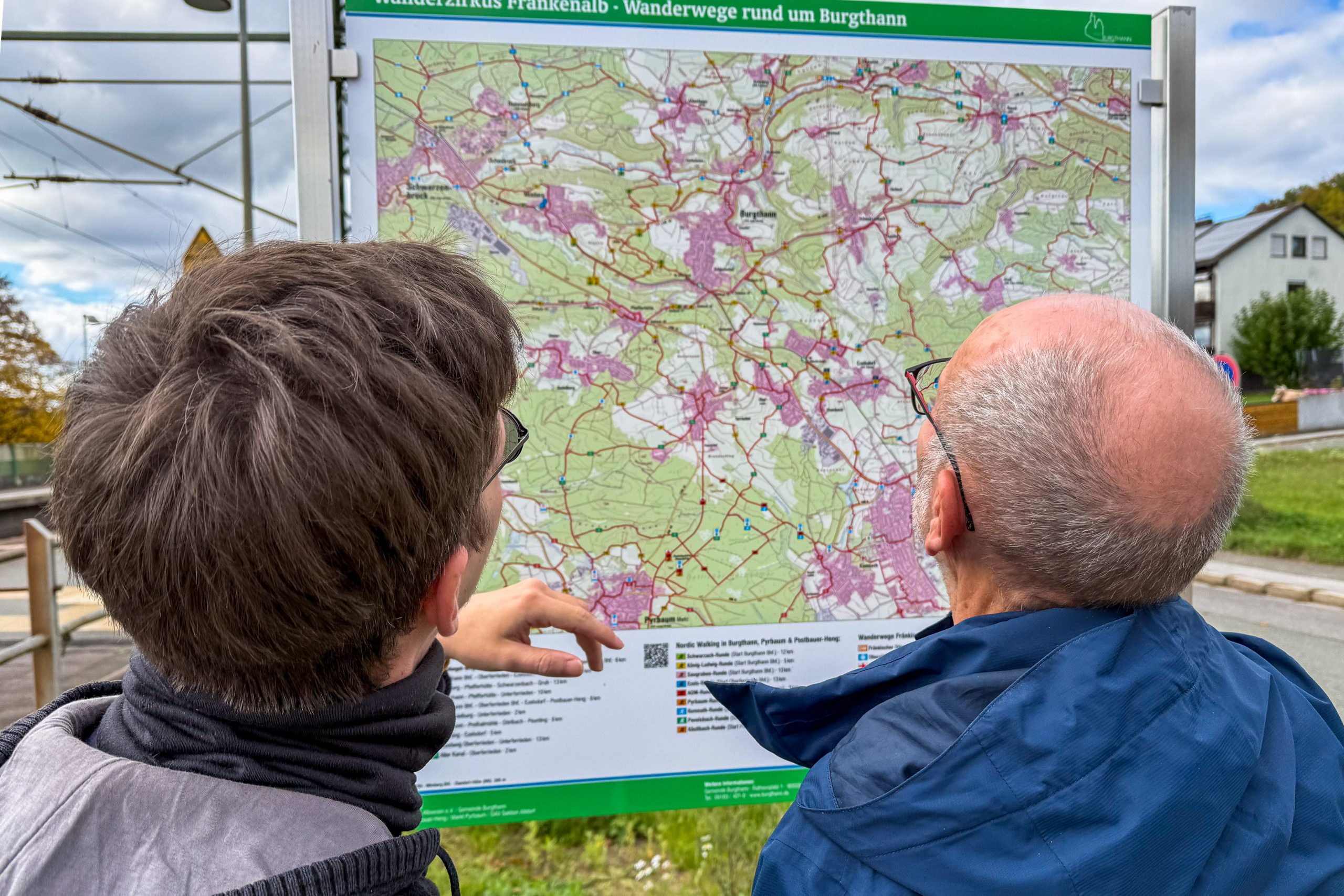 Am vergangenen Wochenende unternahmen Bürgermeisterkandidat Rainer Bock und Gemeinderat Kai Tauscher eine besondere Tour: Sie wanderten alle Ortsteile Burgthanns am Stück ab.
